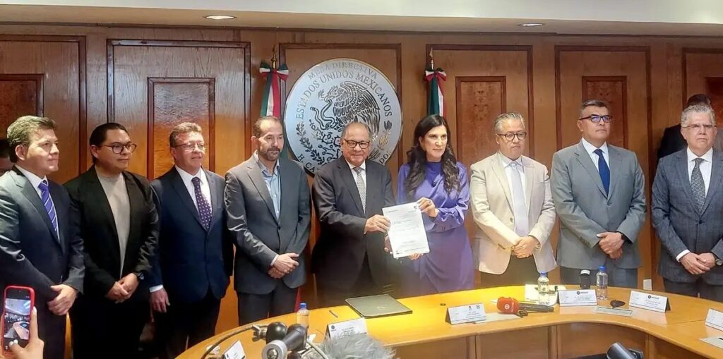 El texto fue recibido por la presidenta de la cámara, Kenia López Rabadán, en las oficinas de la presidencia de la Mesa Directiva, en el segundo piso del recinto legislativo, en un trámite al que acudió personalmente el coordinador de Morena, Ricardo Monreal Ávila, así como el enlace de Gobernación, Juan Ramiro Robledo.