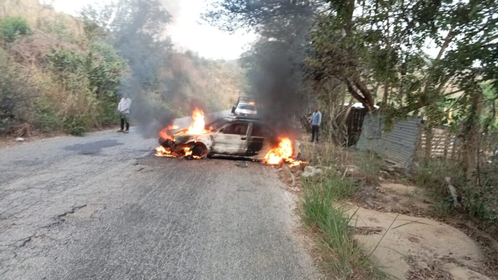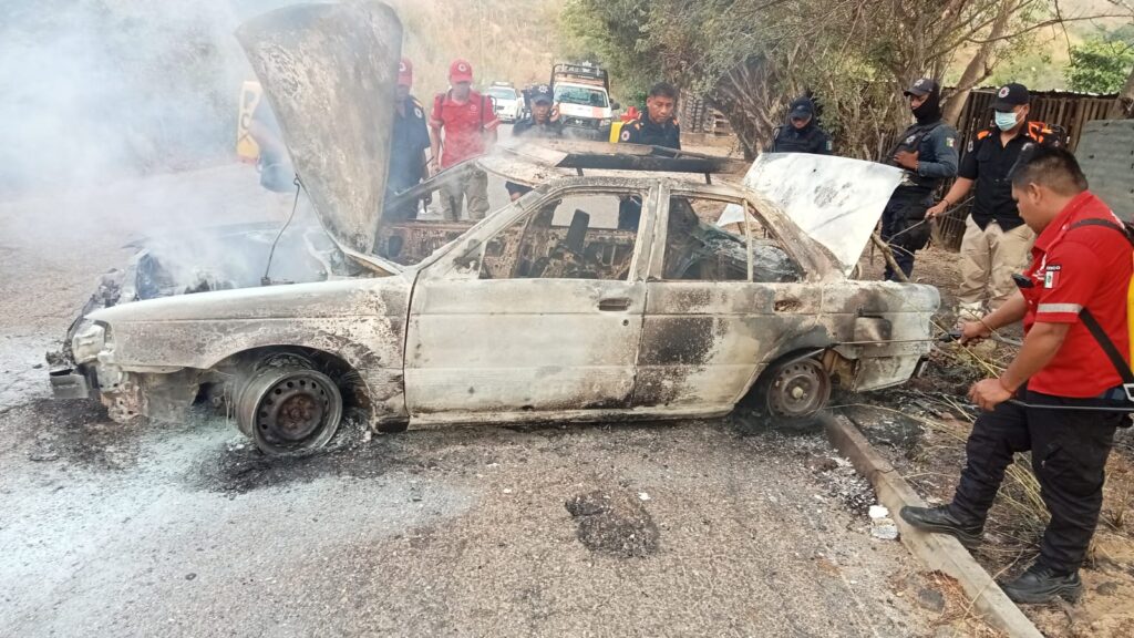 Elementos de Protección Civil en Ometepec, acudieron la mañana del viernes 3 de abril a sofocar un automóvil en llamas.