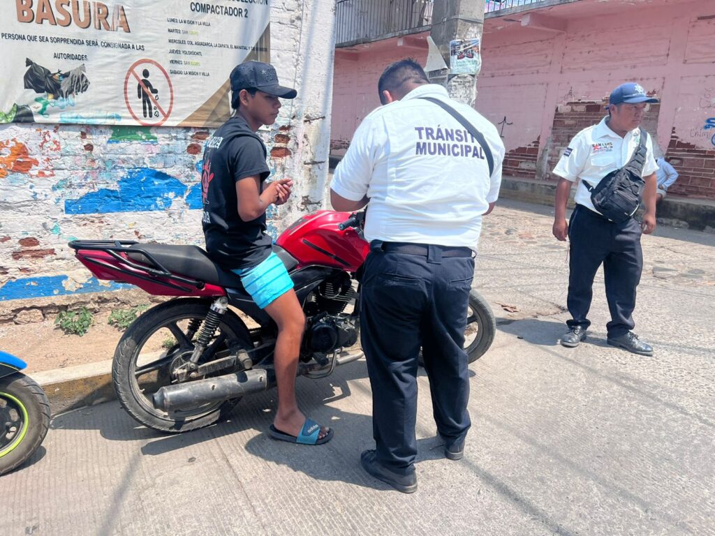 El filtro se instaló sobre la calle Juan Ruíz de Alarcón, esquina con calle Miguel Hidalgo y Costilla, en el barrio de San Isidro, donde personal de esta área brindó la vialidad y realizó la verificación de motos que circularon sobre esta avenida.